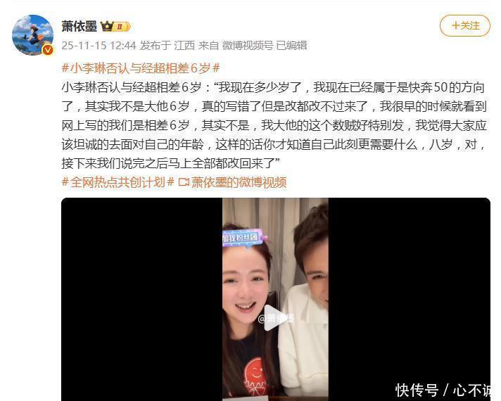 “怎么了?”——小李琳最近在直播里的一句坦诚发言,意外揭开了她和丈夫经超年龄误传多年的“秘密”。据网日爆料,直播中,小李琳正面回应了广为流传的“相岁”说法。“其实我不是大𱑢岁,真的写错了但是改都改不过来了,”她解释道,自己很早之前就发现网络信息有误,但更正速度赶不上传播速度。她随后明确公布真实年龄差:“其实不是,我大他的这个数贼好特别发……八岁。”
